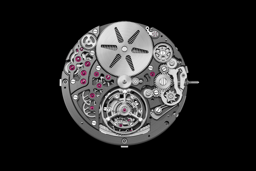 Nový automatický kalibr 8100 je kompletně vyvinut in-house. Jeho rozměry činí 31,4 x 4 mm, obsahuje 379 součástek a 44 kamenů, bije na frekvenci 3 Hz (21 600 vph) a nabízí rezervu chodu 72 hodin. Mechanismus zahrnuje létající tourbillon s titanovou klecí a plochým vláskem. Periferní rotor zajišťuje účinný nátah bez zakrytí pohledu na strojek. Funkční volič na korunce zvyšuje ergonomii, zatímco prosklené zadní víčko podtrhuje industriální charakter konstrukce.