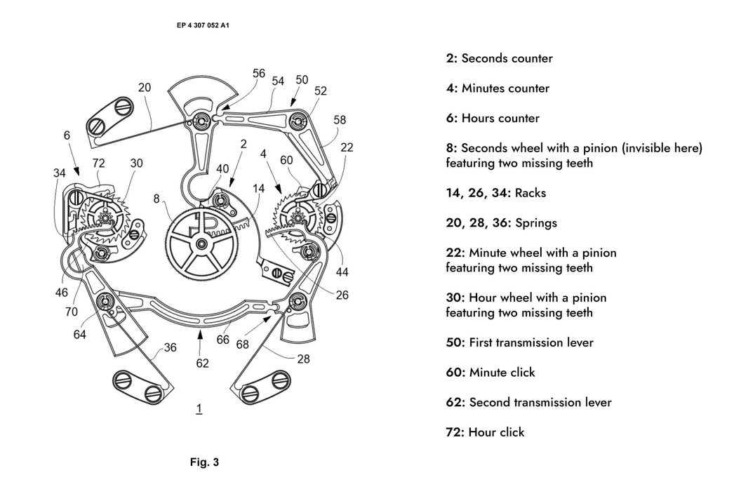 Číselník nese tradiční tmavě modrý odstín Bleu Nuit, Nuage 50 s jemným vzorem Petite Tapisserie (guilloché). Nový font loga odkazuje na archivní dokumenty a propůjčuje modelu vintage charakter. Indexy a ručky tvaru bathtub jsou z bílého zlata, ručky chronografu z titanu. Sčítače chronografu na 3. a 9. hodině jsou umístěny níže. Číselník je lemován stříbrným prstencem v pravém úhlu. Vodotěsnost činí 20 metrů, tedy pouze ochranu proti stříkající vodě, nikoli plavání.