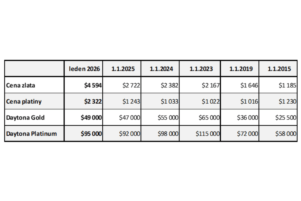 Z dlouhodobého pohledu je ale tento stav u hodinek běžný, protože i např. před 10 lety v roce 2015 stály platinové hodinky dvakrát tolik, co zlaté.