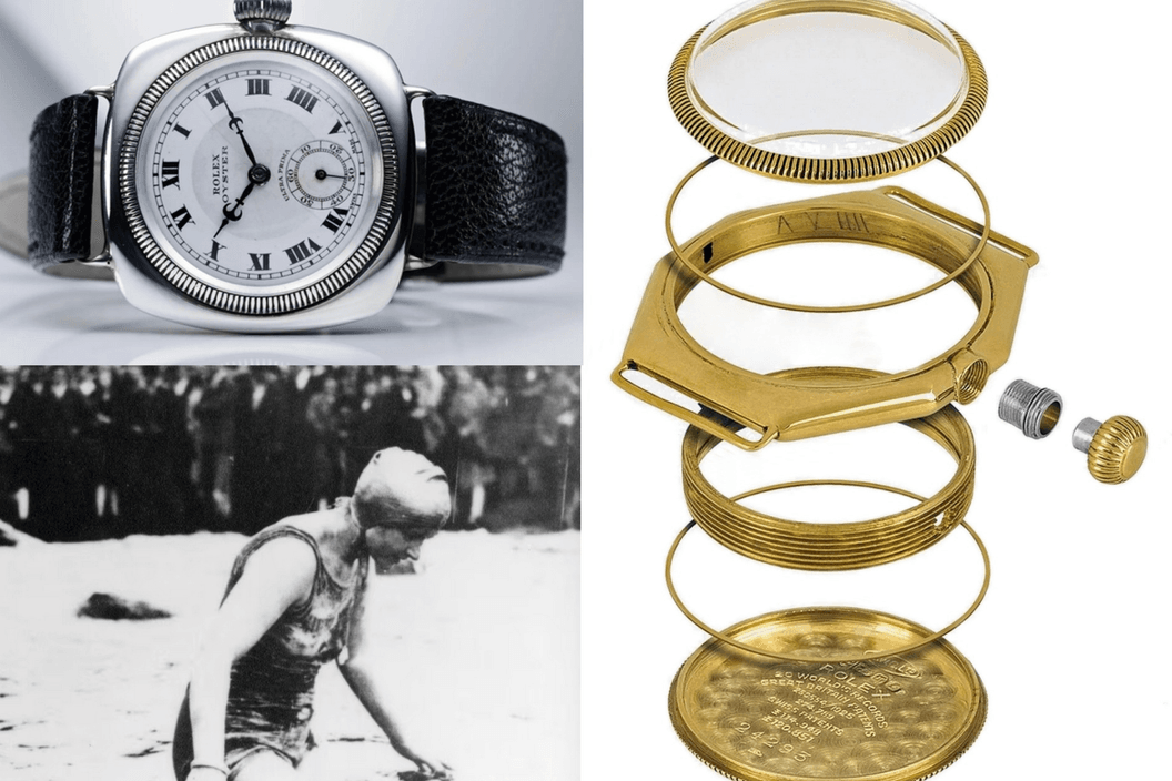 Inženýři Rolexu elegantně a spolehlivě vyřešili utěsnění všech tří rizikových oblastí: lunety, dýnka i natahovací korunky. Možná někoho překvapí, že při známé marketingové akci neměla plavkyně Mercedes Gleitze hodinky na ruce, ale zavěšené kolem krku.
