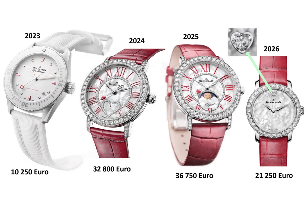 Valentýnské edice Blancpain z posledních let (zdroj: Vít Černý a Blancpain)