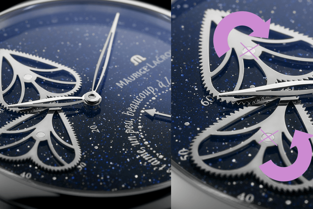 Tím to ale zdaleka nekončí. Maurice Lacroix jde ještě o krok dál a představuje model s ještě propracovanější a nápaditější komplikací, Masterpiece Power of Love. V tomto případě se na číselníku neotáčejí dvě, ale rovnou tři srdce, jejichž pohyb je precizně synchronizován. V jednom krátkém, téměř prchavém okamžiku se jejich vzájemná poloha sladí tak, že společně vytvoří čitelný nápis LOVE, což působí nejen technicky, ale i vizuálně mimořádně efektně.