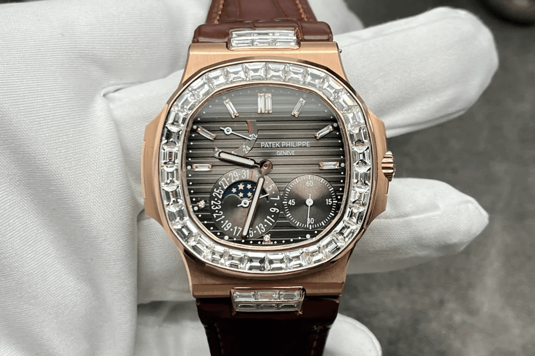 Zajímavé jsou také komplikovanější varianty, jako je 5726 s ročním kalendářem nebo 5980 a 5990, které spojují ikonický design s precizními chronografy a funkcí Travel Time. Technickým unikátem je pak reference 5740/1G, ultra tenký model s prvním věčným kalendářem v řadě Nautilus, vyrobený z bílého zlata. Výjimečnou kapitolou je i reference 5723/112R, platinový Nautilus s diamantovou lunetou a baguette indexy, který vznikal výhradně pro vybrané klienty.