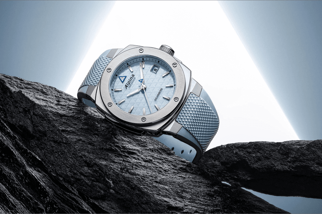Skutečný výkon tohoto modelu spočívá v jeho translucentním číselníku, který ukrývá pokročilé fotovoltaické články a zároveň zachovává neprůhledný a vytříbený vzhled tradičních číselníků značky Alpina. Číselník zdobený ikonickým trojúhelníkovým motivem Alpina je doplněn aplikovanými hodinovými indexy a luminiscenčními ručkami pro optimální čitelnost za všech okolností. Logo na pozici 12 hodin jemně rámuje modrý okraj a trojúhelníkové protizávaží vteřinové ručky je rovněž zdobeno modře, čímž nenápadně signalizuje příslušnost hodinek k řadě se solární technologií.