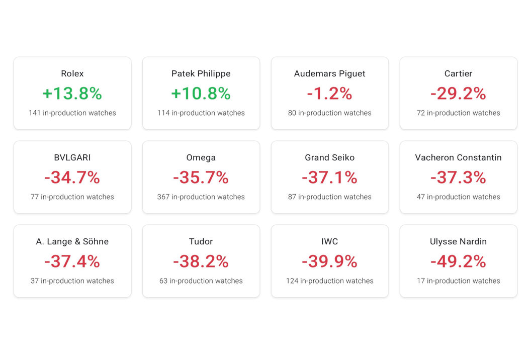 Udržení hodnoty vzorku modelů podle značky; (zdroj: WatchCharts)