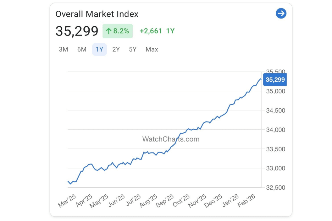 WatchCharts Overall Market Index Year to Date; (zdroj: WatchCharts)