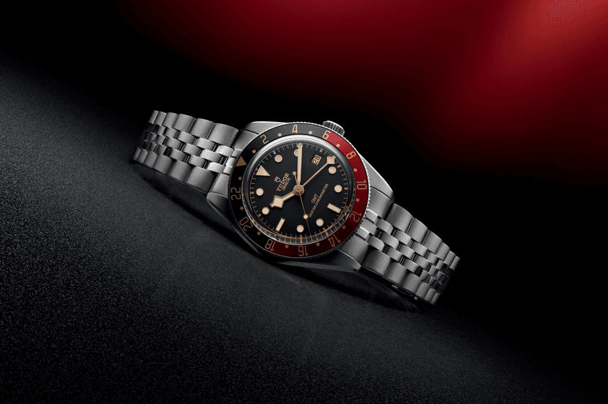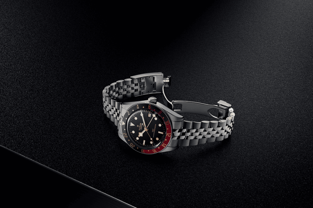 TUDOR představuje další model v řadě Black Bay, Black Bay 58 GMT. Tento model evokuje dobu, kdy novinku cestování proudovými letadly napříč časovými pásmy doprovázel stejně okouzlující a elegantní styl. Je vybaven novým manufakturním GMT kalibrem TUDOR střední velikosti, doplněným teplými odstíny vínové a černé a zlacenými prvky na lunetě. Univerzálně přitažlivé pouzdro modelu Black Bay 58 se stalo jeho poznávacím znamením a nyní přichází i v provedení GMT.