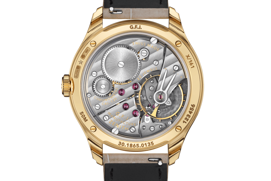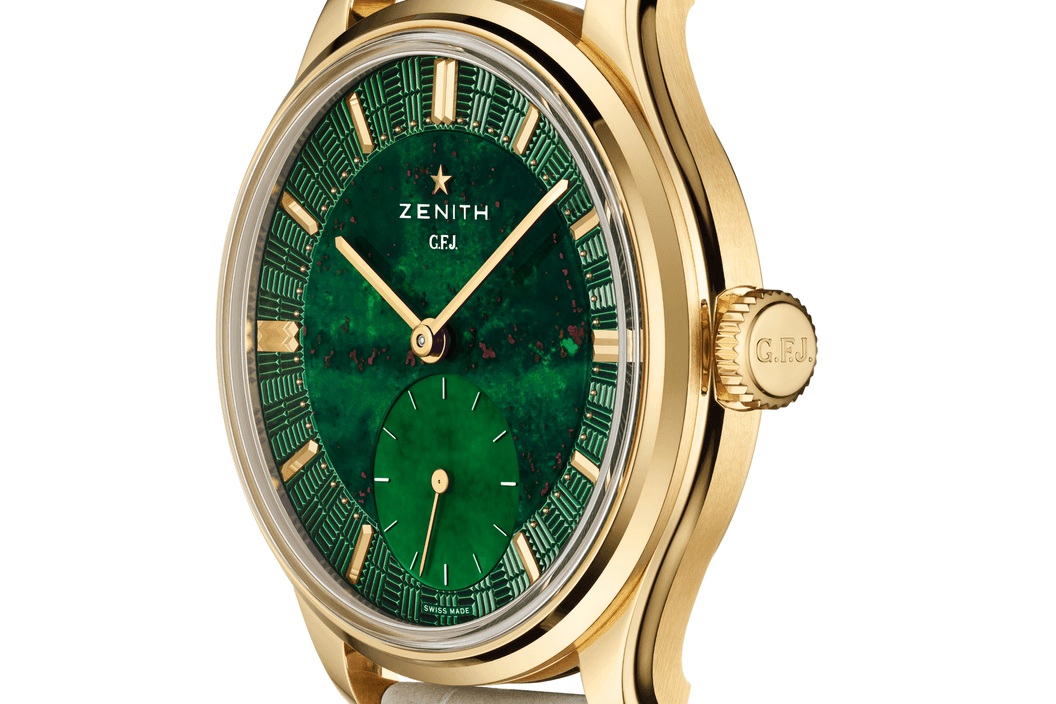 Poprvé byl představen při znovuzrození legendárního kalibru 135 a v roce 2025 získal cenu „Chronometry Prize“ na Grand Prix d’Horlogerie de Genève. G.F.J. se tak etabloval jako současné vyjádření historického mistrovství značky Zenith v observatorní časomíře. Dnes se vrací v nové limitované edici 161 kusů ve žlutém zlatě s výrazným číselníkem z jaspisu „bloodstone”. Tato edice není jen novým materiálovým provedením, ale potvrzuje G.F.J. jako současný domov kalibru 135: kalibru, jehož příběh pokračuje dál.