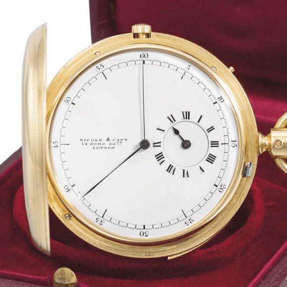 Skutečný pokrok přišel v roce 1844, kdy Švýcar Adolphe Nicole udělal další krok ve vývoji chronografu, když jako první přidal funkci resetu, která umožňovala opakovaná po sobě jdoucí měření času. V druhé polovině 19. století se chronografy zmenšily na rozměry kapesních hodinek a objevily se první modely s centrální ručkou a spouštěcím tlačítkem.